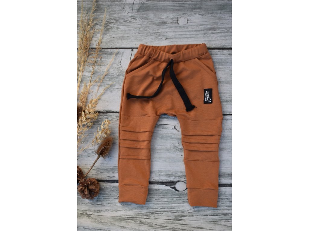 Dětské tepláky baggy karamel s žebrovaním