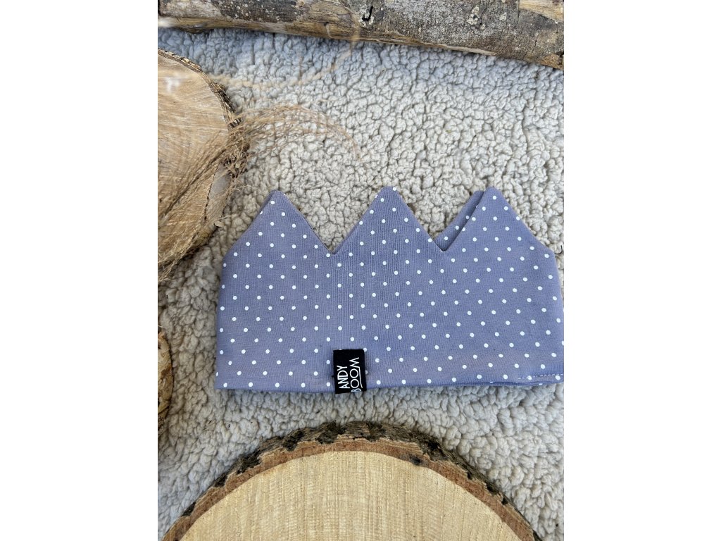 bavlněná čelenka korunka puntík na šedé