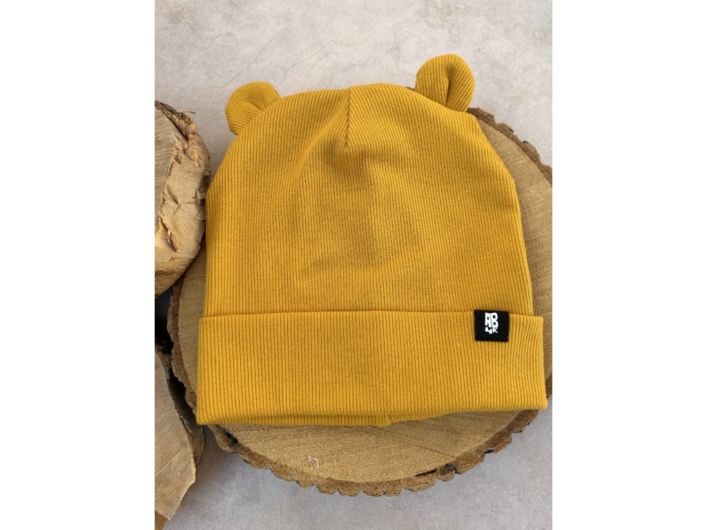 Dětská čepice žebrovaná oker AB4K s ušima