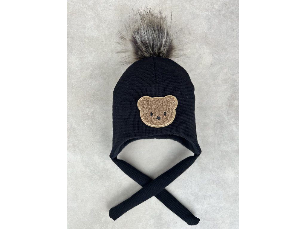 čepice ušanka vafle Little Bear black bambule