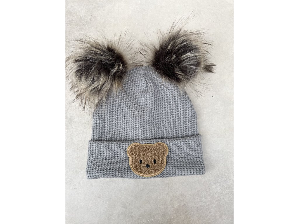 Zimní čepice Little Bear svetrovina grey dvě bambule