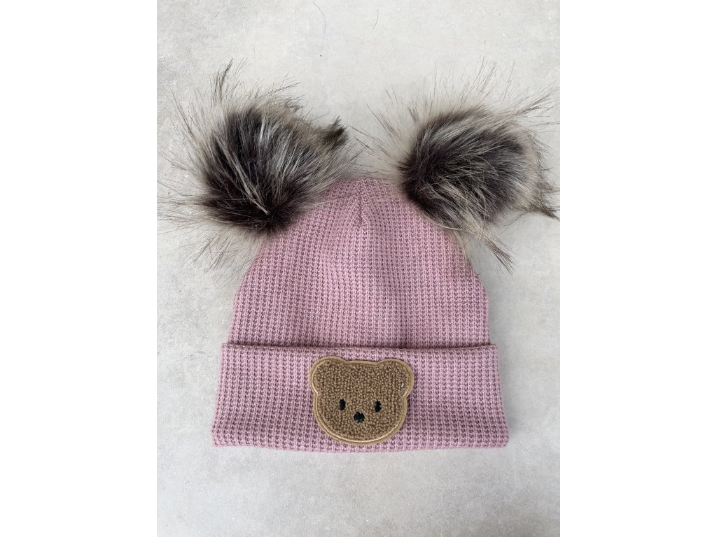 Zimní čepice Little Bear svetrovina old rose dvě bambule