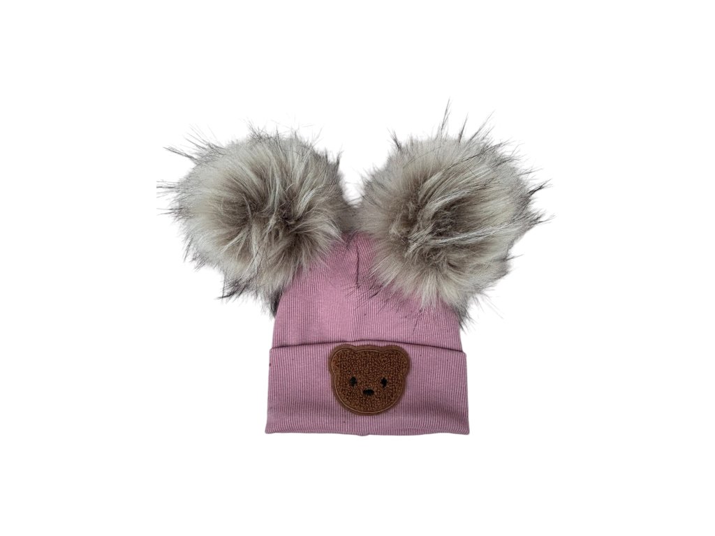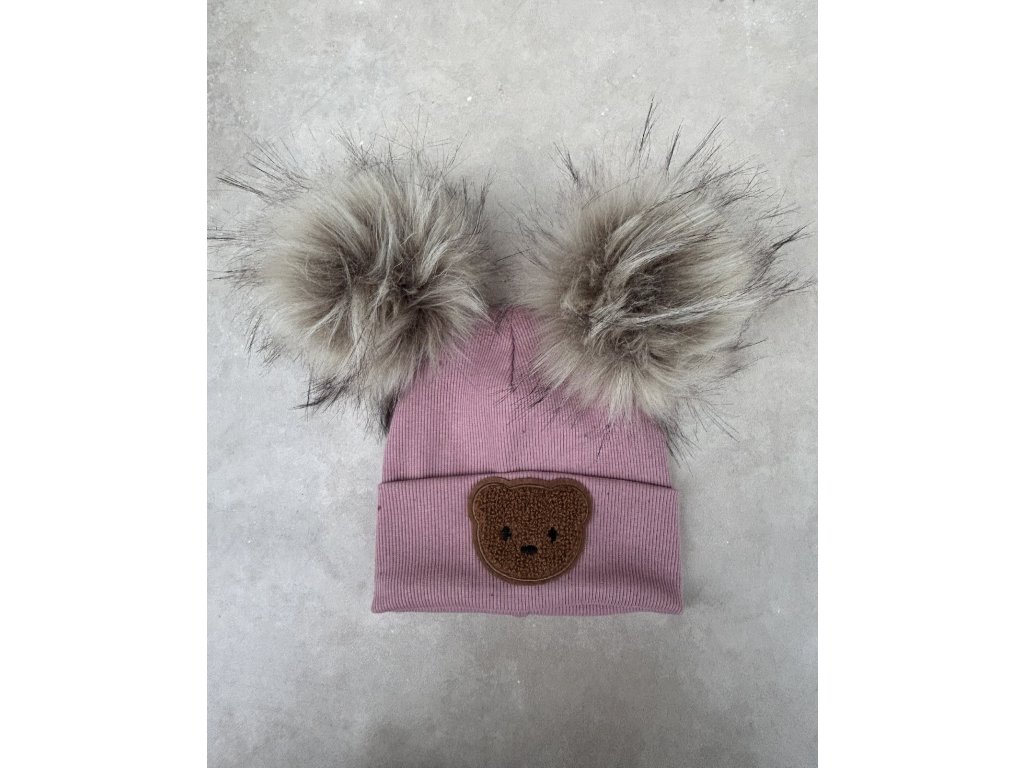 Zimní čepice Little Bear žebro old rose dvě bambule