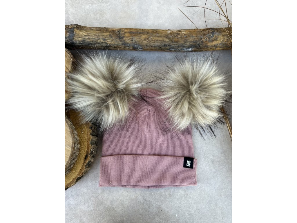 Zimní čepice žebro starorůžová dvě bambule