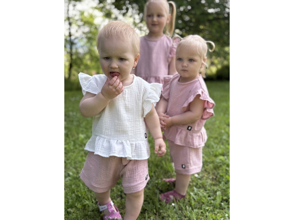 Dětské mušelínové kraťase golden dots