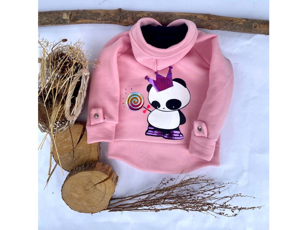 Dětský teplávkový kabátek panda candy pink