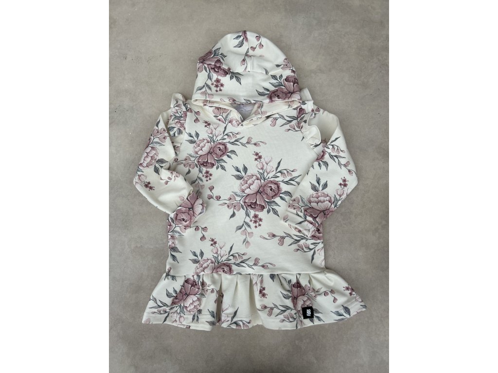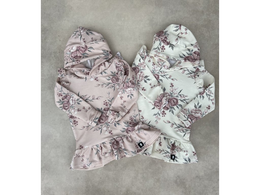 Dívčí mikina Pivoňky ivory rose s volánky