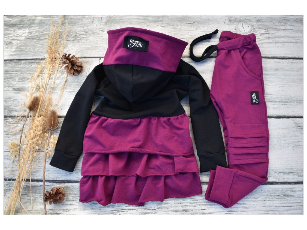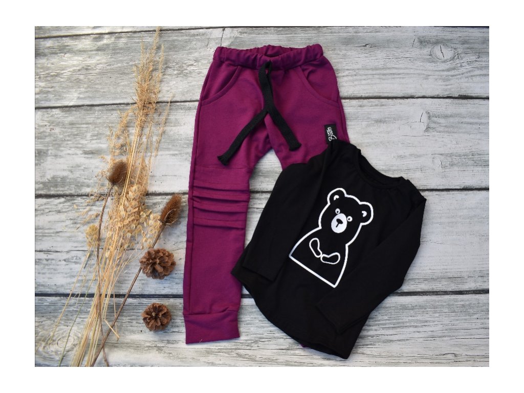 Dívčí tepláky-baggy ostružina s žebrovaním