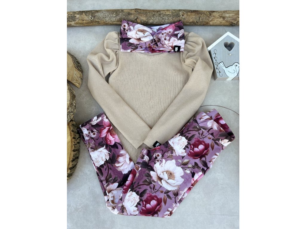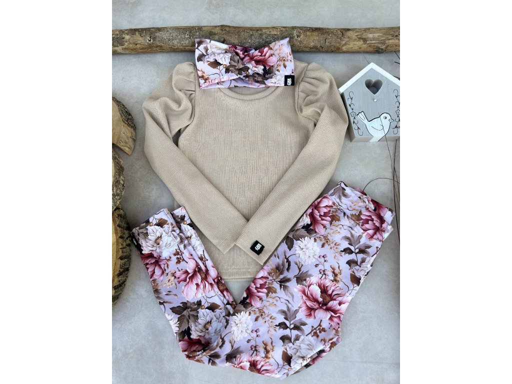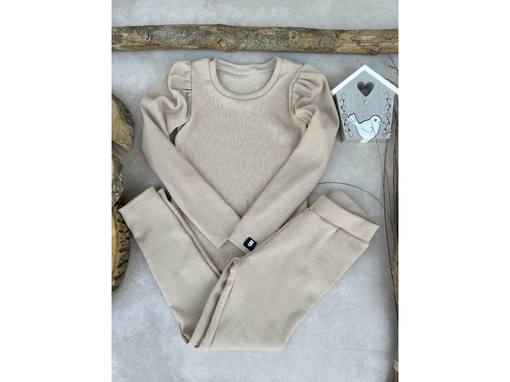Dívčí tričko žebrované s nabíranými rukávy mocca