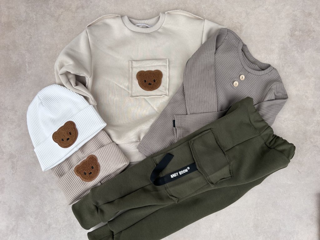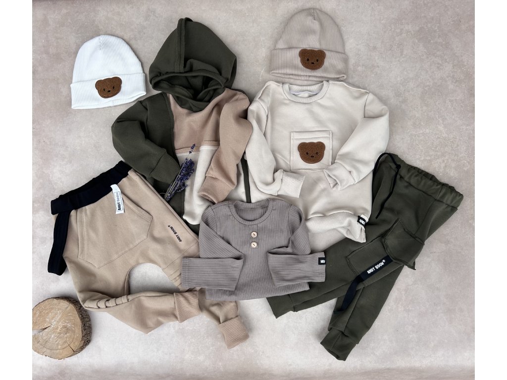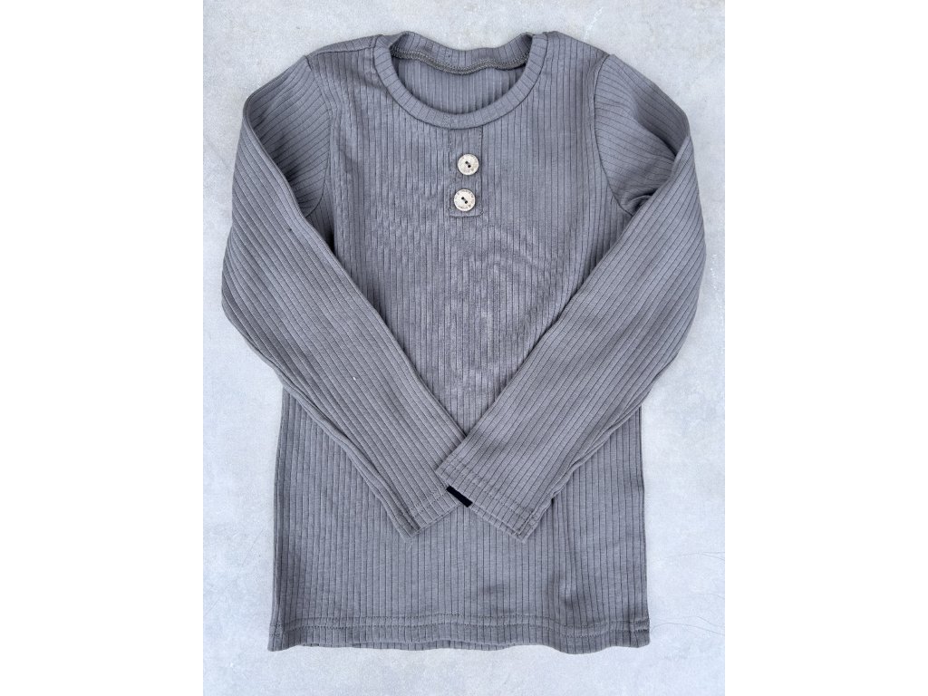 tričko žebrované BASIC taupe knoflík