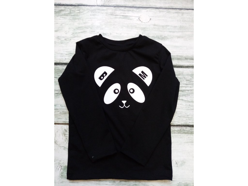Bavlněné tričko černé s dlouhým rukávem na prsou panda.