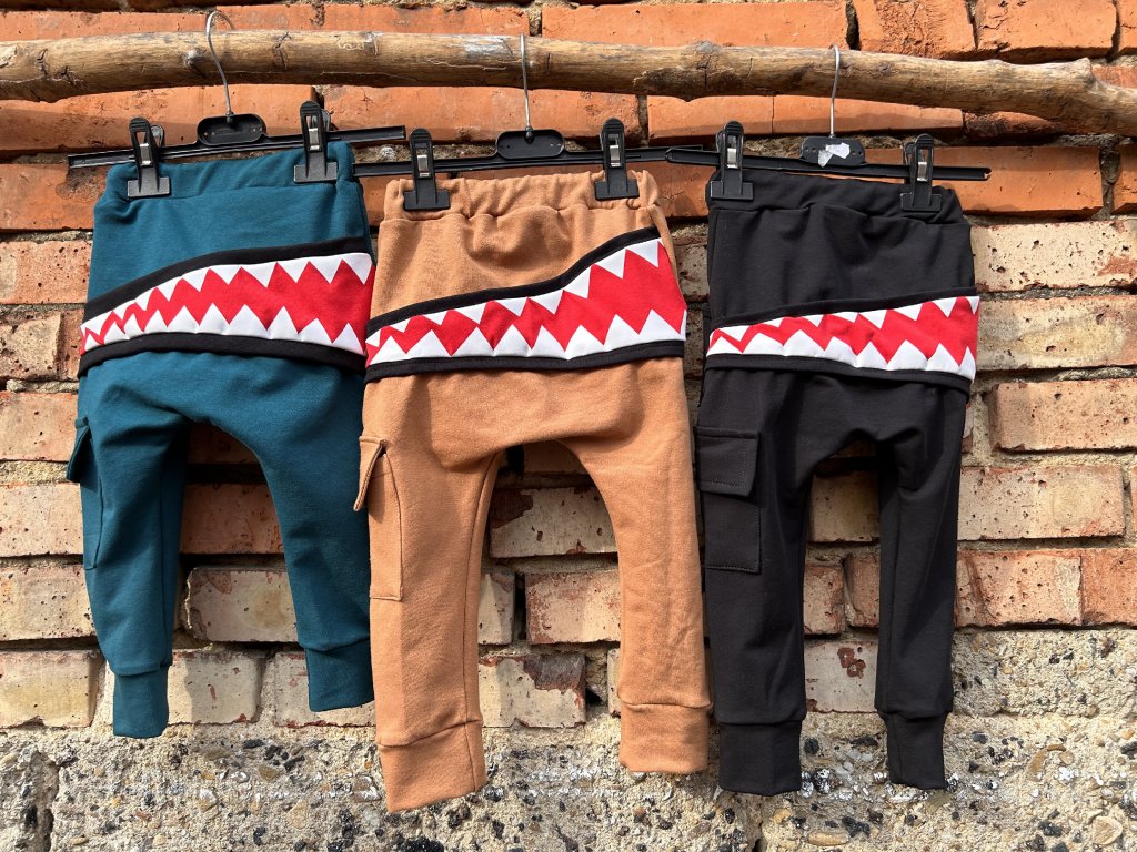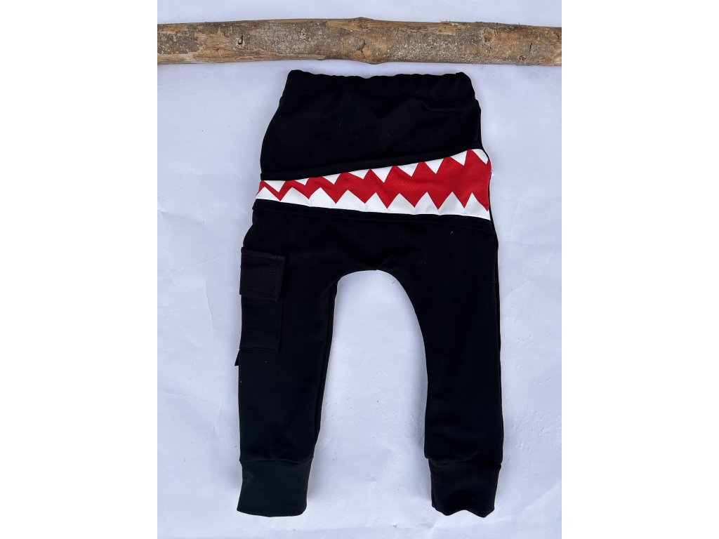 - Dětské baggy stylově navržené jak pro slavnostní i každodení nošení vhodné pro dívky i kluky. Baggy mají na zadní straně sharkovou tlamu s bílými zoubky.