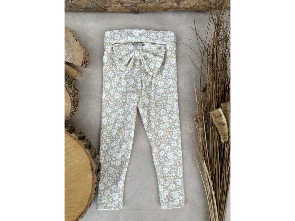 legíny žebrované mini květy na béžové