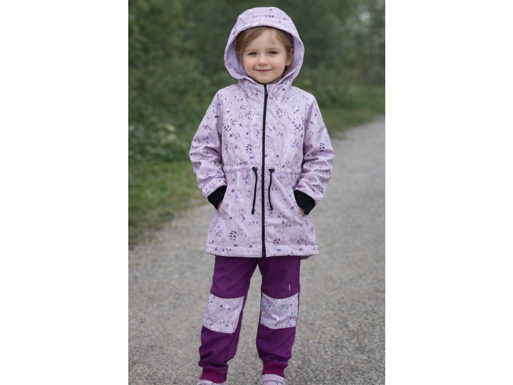 Softshellové kalhoty fialové s koleny lila mini květy